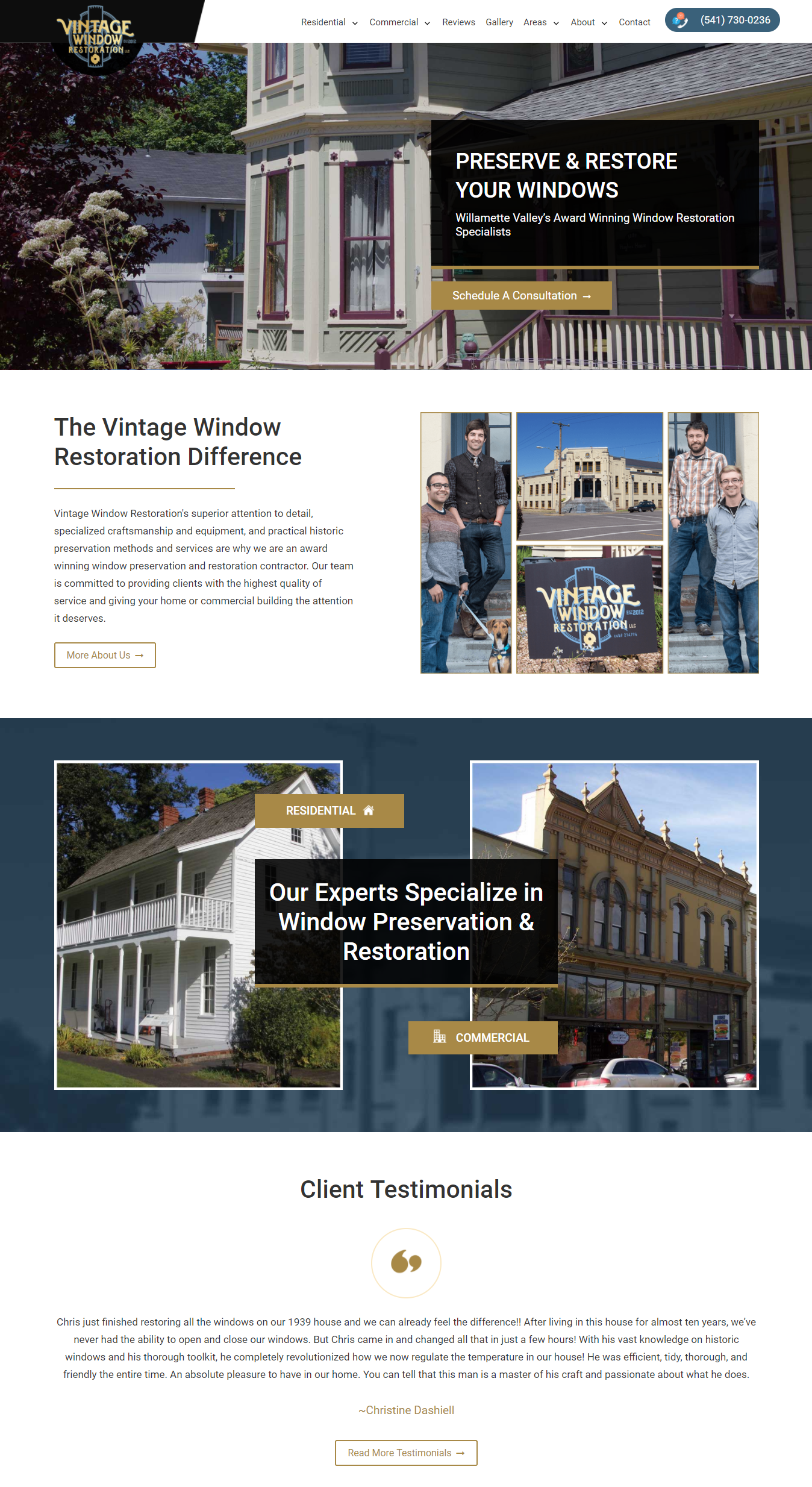 Vintage Window Restoration was only using Facebook to promote their business for many years. There was no real marketing strategy in place other than the company posting job updates and other social events such as their participation educational workshops. Surprisingly the company did quite well with this Social Networking tool. This became the center of the Marketing Strategy as we were planning for a new website. There was something special about Vintage’s ability to articulate which not only benefitted Vintage for their new website, but also become the centerpiece for this Case Study.